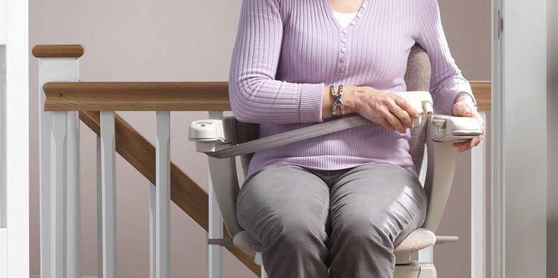 樓梯升降椅的擱腳板、扶手和座椅可以輕鬆翻轉下來。當它展開後,您就可以坐上去了。